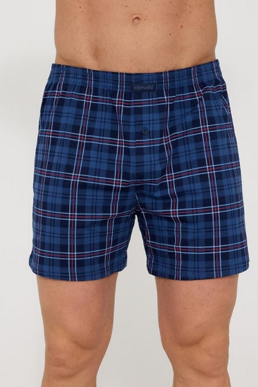 "description" => "Bokserki męskie , wykonane są z mieszanki bawełny i poliestru , dwie z klasycznym wzorem w kratę, jedna w kolorze granatowego melanżu , rozporek zapinany na guziki, luźny krój zapewnia pełną swobodę ruchów , doskonale sprawdzą się zarówno na co dzień, jak i do spania . Zapakowane w praktyczne, zamykane na suwak opakowanie. Skład: 80% bawełna, 20% poliester."