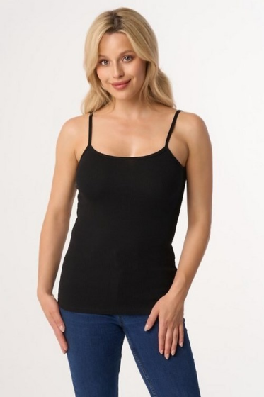 "description" => "Koszulka damska , wykonana w technice bezszwowej z przędzy poliamidowej z dodatkiem elastanu , delikatna, miękka lekko połyskująca dzianina , wąskie, elastyczne ramiączka , dekolt wykończony ozdobną koronką , idealnie przylega do ciała , pakowana w pudełko . Skład: 93% poliamid, 7% elastan."