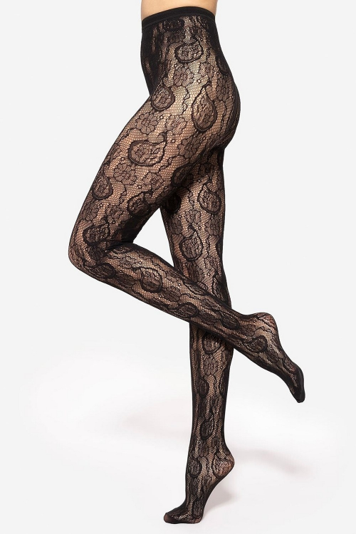 Stylowe rajstopy damskie , efektowny kwiatowy wzór na kabaretce z wysokiej jakości przędzy z dominacją poliamidu i dodatkiem elastanu, bez zaznaczonej części majteczkowej w pasie płaska, wygodna gumka, wzmocnione palce , idealne na specjalne okazje, jak i na co dzień . Skład: 83% poliamid, 17% elastan.