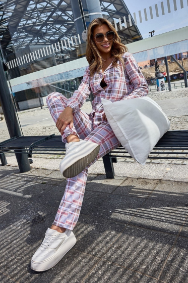 "description" => "Piżama damska wykonana z delikatnej bawełny, koszulka wzorzysta, zapinana na guziki, długi rękaw, po bokach naszyte kieszenie, spodnie długie, jednolite. Skład: 100% bawełna."
