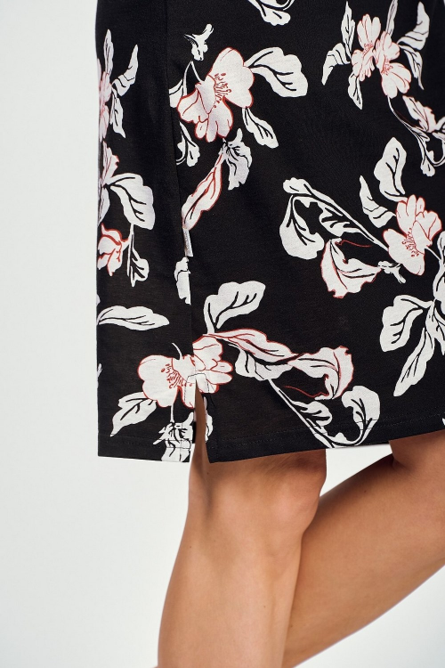 Bawełniana koszula damska print w kolorowe kwiaty , rękaw 3/4, dekolt półokrągły , długość do kolana. Skład: 100% bawełna.