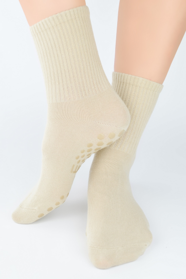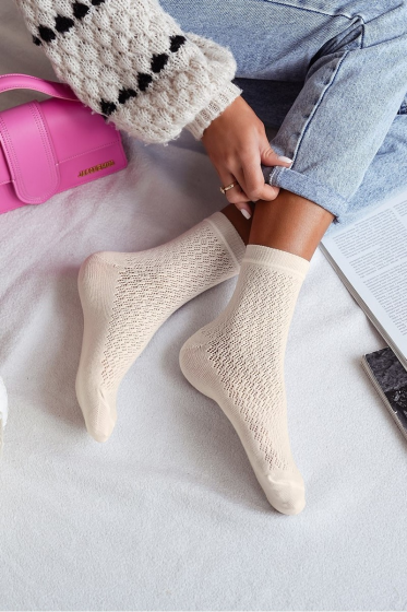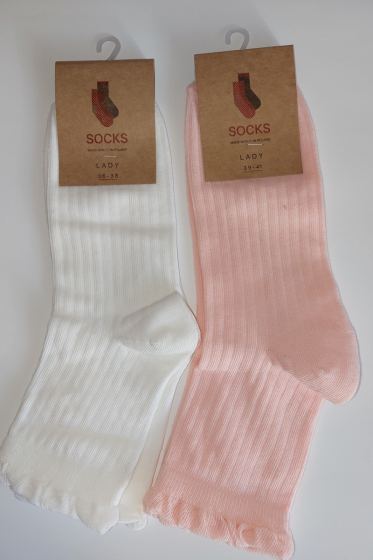 "description" => "Skarpetki damskie gładkie idealny dodatek do eleganckich lub casualowych stylizacji bezuciskowy ściągacz w formie falbanki lub gładki .Występują kolory: biały,ekri,beż,jasny melanż,morela,czarny. Skład: 76% poliamid, 22% elastan 2%."