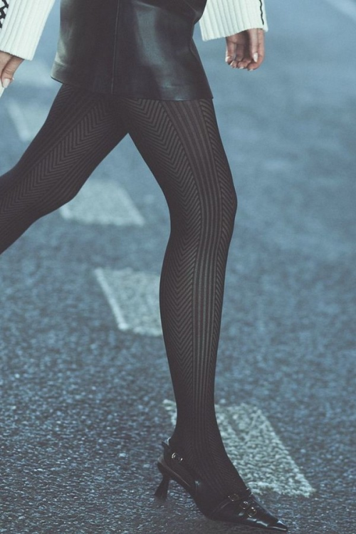 Rajstopy Mavis w jodełkę to propozycja dla kobiet, które chcą wyróżnić stylizację mocnym, geometrycznym akcentem. Geometryczny wzór jodełki zdobiący nogi optycznie je wysmukla, dodając sylwetce lekkości i elegancji. Czarne rajstopy damskie Mavis w kolorze nero to klasyka w nowoczesnym wydaniu, która przyciąga spojrzenia i podkreśla charakter stylizacji.Skład: 84% Poliamid, 15% Elastan, 1% Bawełna.