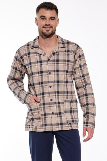 "description" => "Piżama/dres męski typu Homewear , wysokiej jakości bawełna o strukturze wafla, bluza z długim rękawem, półokrągły dekolt, zapinany na guziczki na dole bluzy naszywka z napisem HENDERSON . Długie spodnie w pasie szeroka guma obszyta prążkowaną dzianiną i troczek do regulacji pasa , po bokach wygodne kieszenie , rękawy, dół bluzy i nogawki zakończone ściągacze . Skład: 100% bawełna."