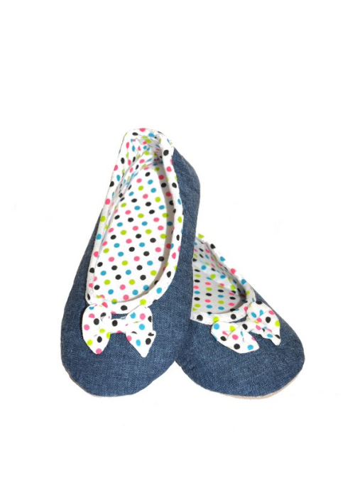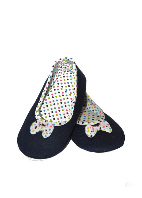 Wygodne i komfortowe kacie dziewczęce typu baletki. Skład 100% poliester. Dostępne kolory: granatowy, różowy, jeans, szary - wybierane losowo.