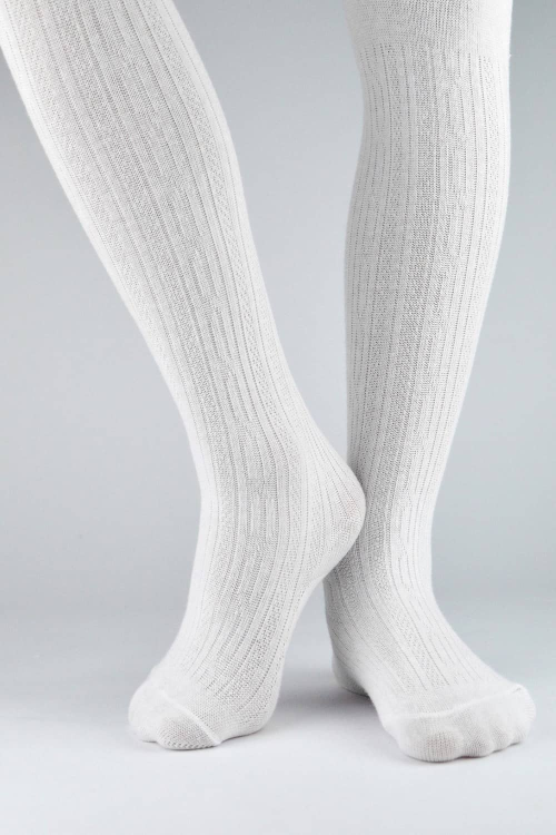 Rajstopy niemowlęce żakardowe z miękkiej bawełny. Skład:72% bawełna, 25% poliamid, 3% elastan.