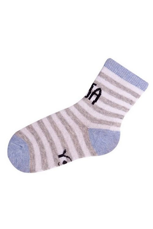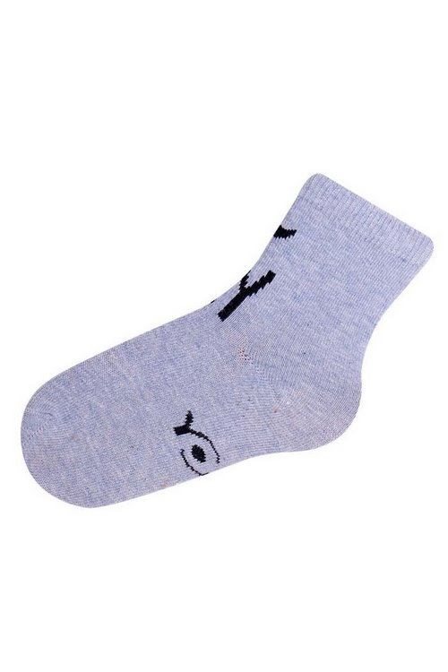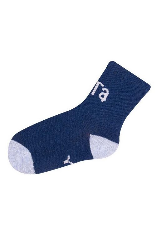 Wzorzyste skarpety dziecięce z napisami w języku polskim. Skład: bawełna 80%, poliamid 15%, elastan 5%.