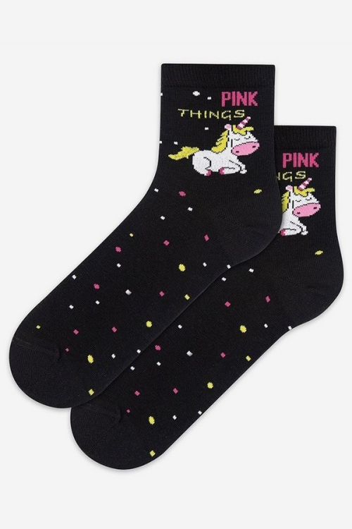 Skarpety dziewczęce , miękka bawełna , nieuciskający ściągacz , bogate wzornictwo i kolorystyka . Skład uzależniony od wzoru i koloru: 69%-85% bawełna, 11%-29% poliamid, 2% elastan.