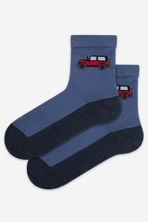 Skarpety chłopięce , miękka bawełna , nieuciskający ściągacz , bogate wzornictwo i kolorystyka . Skład uzależniony od wzoru i koloru: 69%-85% bawełna, 11%-29% poliamid, 2% elastan.