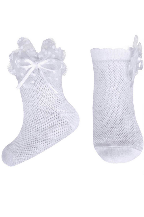 Skarpety dziecięce bawełniane z aplikacją. Skład: 76% bawełna, 21,5% poliamid, 2,5% elastan.