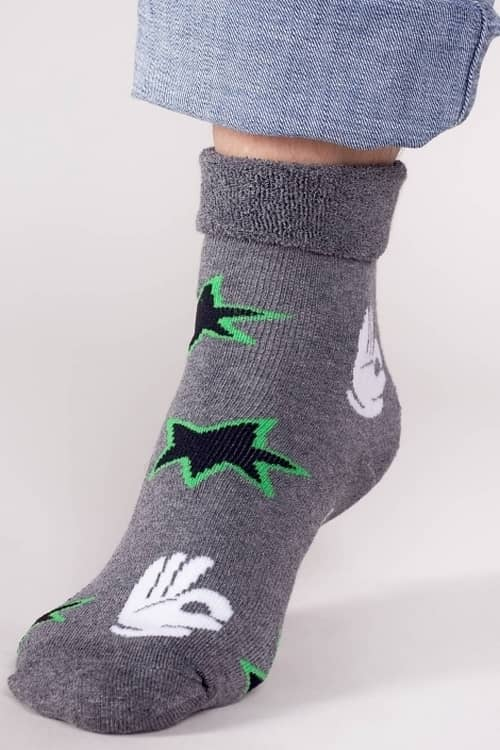 Skarpetki chłopięce miękka bawełna , kolorowe wzory od wewnętrznej strony frotta. Nieuciskający, wywinięty ściągacz , dostępne kolory: szary, bordowy, granatowy, ciemny szary, czarny. Opakowanie 6 mix kolor. Skład: 82% bawełna, 15% poliester, 3% elastan.