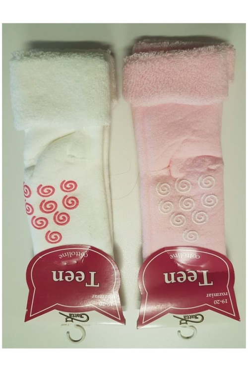 Bawełniane 89% skarpetki dziecięce z antypoślizgową stopą, kolorowe ozdobione różnymi wzorami, od wewnętrznej strony ciepła frota.
