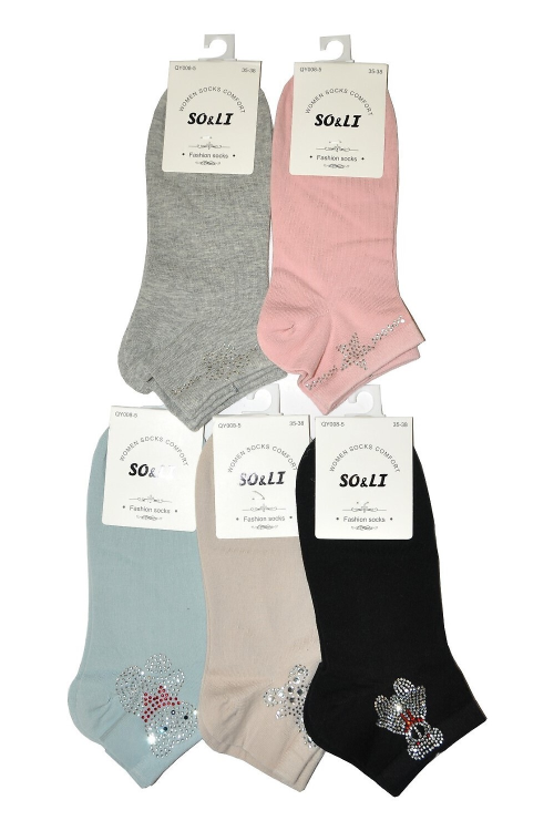 Zakostki bawełniane damskie z ozdobnymi cekinami. Sład: 95% bawełna , 5% spandex.