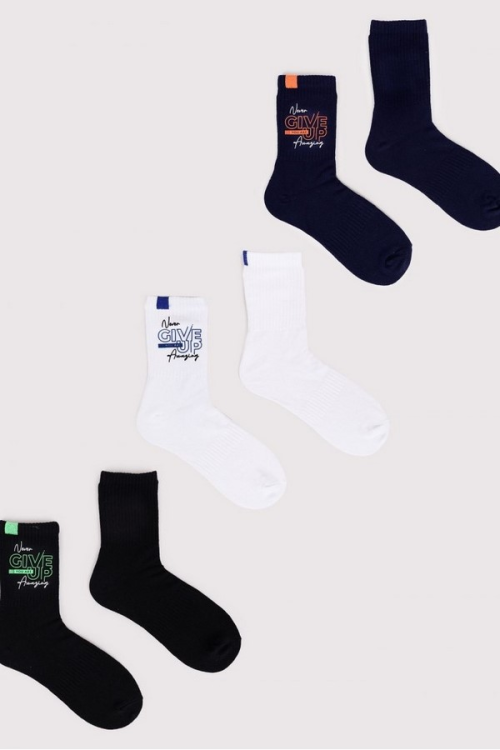 Bawełniane, wzorzyste skarpety sportowe. Skład: 80% bawełna, 18% poliamid, 2% elastan .