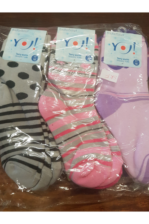 Skarpetki dziecięce z bawełny 80%, poliamidu 15% i elastanu 5%, ozdobione kolorowymi wzorami. Od wewnętrznej strony miła, miękka frotta. Wywijany, nieuciskający ściągacz.