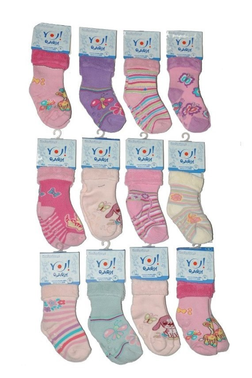 Skarpety frotte wywyjane z ABS. Bogate wzornictwo i kolorystyka. Pakowane po 12 par.