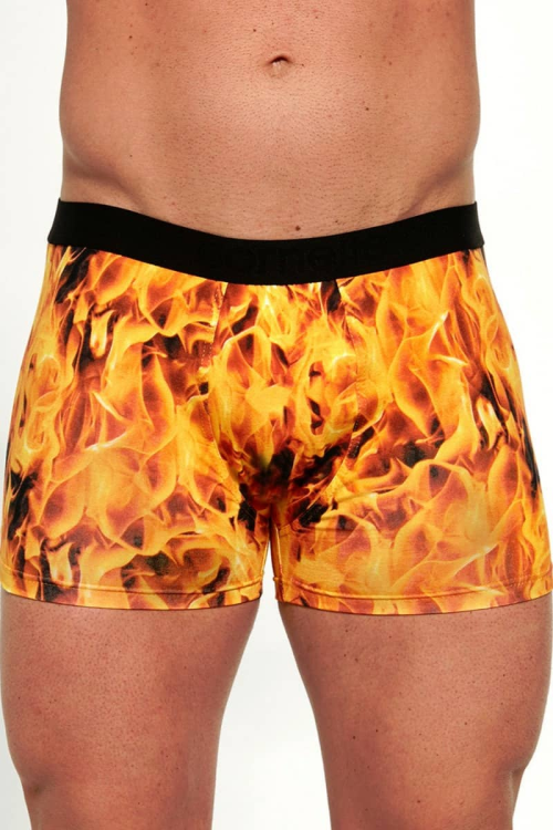 Wzorzyste bokserki męskie z wysokiej jakości bawełny 95% i dodatku elastanu. Model dopasowany do ciała, w pasie szeroka guma z napisem . Płaskie łączenie szwów, bezuciskowe wykończenie nogawek.