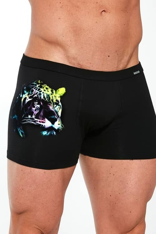 Bokserki męskie ozdobione nadrukiem. Wykonane z wysokiej jakości bawełny 95% z dodatkiem elastanu, doskonale przylegają do ciała. Płasko łączona guma obszyta bawełną, bezuciskowe wykończenie nogawek.