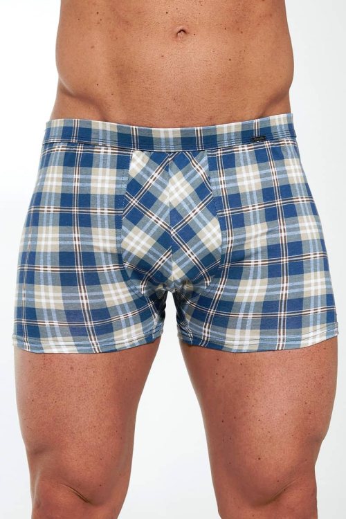 Bokserki męskie - wzorzyste. Płasko łączona guma obszyta bawełną, bezuciskowe wykończenie nogawek zapewniają wygodę i komfort. Doskonale przylegają do ciała. Skład: 95% bawełna, 5% elastan.