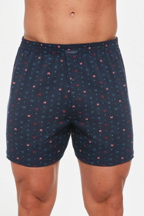 Męskie bokserki z bawełny 100%. Luźny fason zapewnia komfort jakiego potrzebuje każdy mężczyzna. Wygodna guma w pasie obszyta bawełną. Rozporek zapinany na guzik.