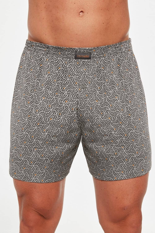 Męskie bokserki z bawełny 100%. Luźny fason zapewnia komfort jakiego potrzebuje każdy mężczyzna. Wygodna guma w pasie obszyta bawełną. Rozporek zapinany na guzik.