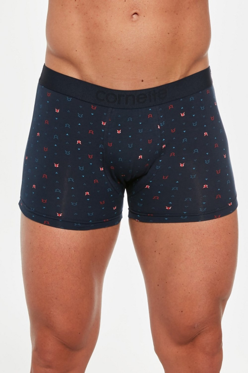Wzorzyste bokserki męskie z wysokiej jakości bawełny 95% i dodatku elastanu. Model dopasowany do ciała, w pasie szeroka guma z napisem . Płaskie łączenie szwów, bezuciskowe wykończenie nogawek.