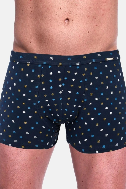 Bokserki męskie , wysokiej jakości wzorzysta bawełna , dopasowany krój . Pakowane w pudełko. Skład: 95% bawełna, 5% elastan.
