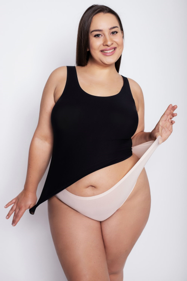 "description" => "Figi damskie , krój maxi, wysoka linia talii , szersze, pełniejsze boki , kolorowy, letni print w muszelki, cięte laserowo, bezszwowe , niewidoczne pod dopasowaną odzieżą . Skład: 89% poliamid, 10% elastan, 1% bawełna."