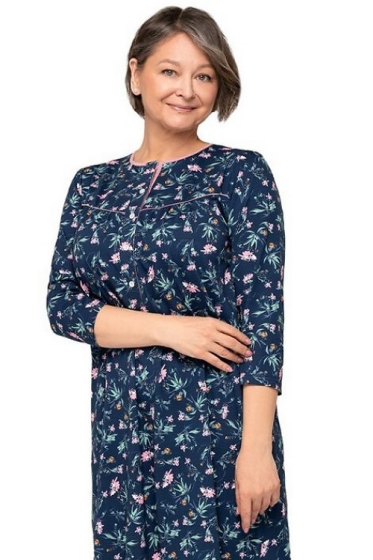 "description" => "Piżama damska , wykonana z delikatnej bawełny , koszulka jednolita, zapinany na guziki , wzorzysty dekolt , rękaw 7/8 na piersi naszyta kieszonka , po bokach wsuwane kieszenie , spodnie długie, wzorzyste. Skład: 100% bawełna."