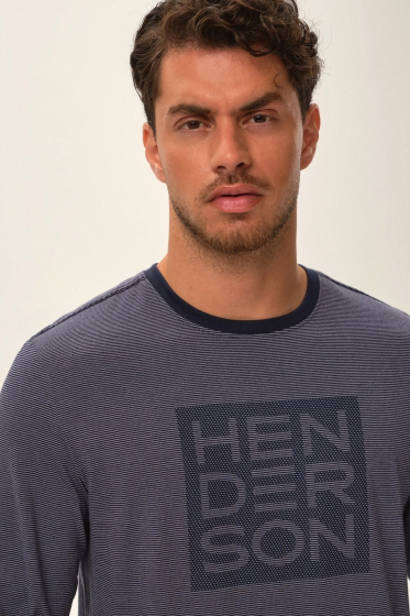 "description" => "Dres męski typu Homewear wysokiej jakości melanżowa bawełna , bluza z długim rękawem półokrągły dekolt , na dole bluzy naszywka z napisem HENDERSON , długie spodnie w pasie szeroka guma obszyta prążkowaną dzianiną i troczek do regulacji pasa , po bokach wygodne kieszenie , rękawy, dół bluzy i nogawki zakończone ściągaczem , Skład: 70% bawełna, 30% poliester."
