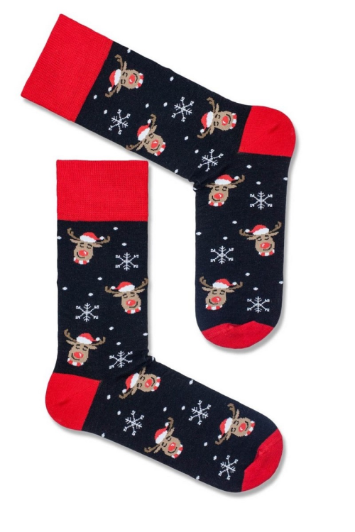 Skarpety Milena 1290-025 świąteczne Renifery w czapce Mikołaja i szaliku 38-46