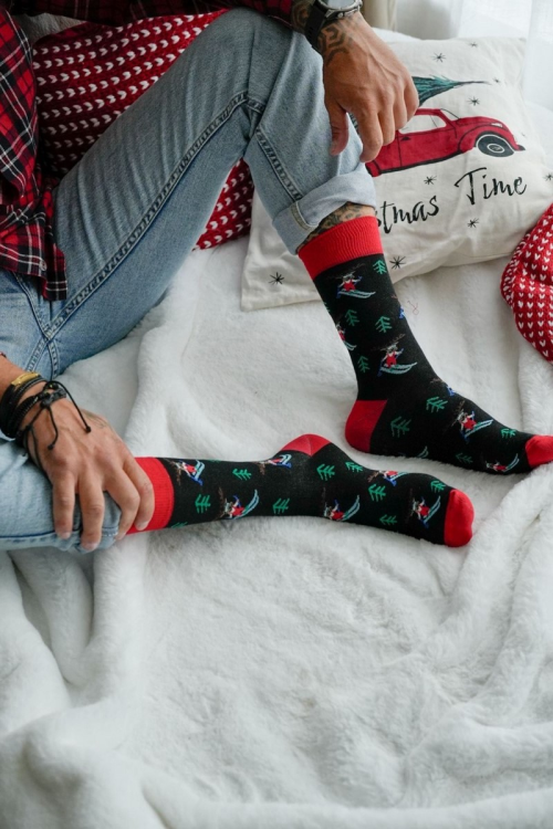 Kolorowe skarpety męskie wysokiej jakości bawełna, ozdobione świątecznym motywem idealne na prezent. Skład: 75% bawełna, 20% poliamid, 5% elastan.