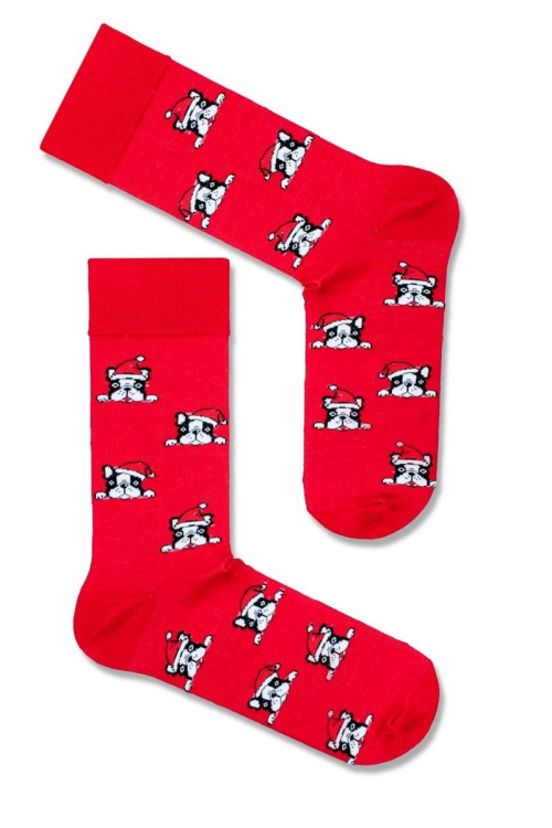 Skarpety Milena 1290-014 świąteczne Buldogi w czapce Mikołaja 38-46