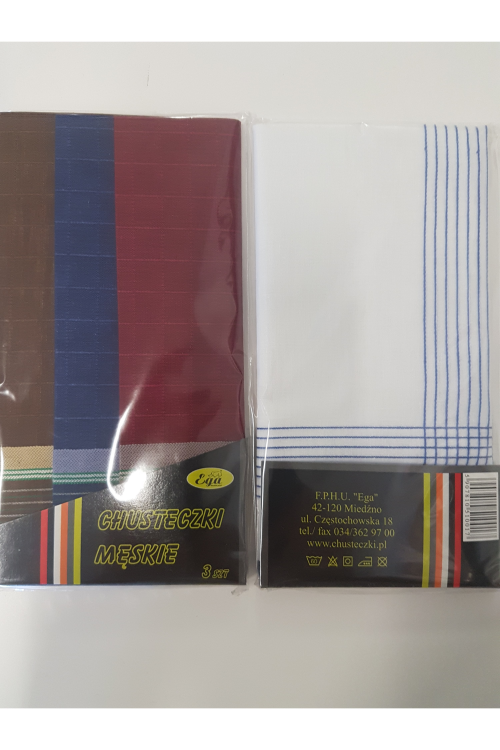 Chusteczki męskie pakowane po 3 sztuki.