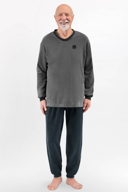Ciepła frottowa piżama męska z długim rękawem. Skład: 95% bawełna, 5% elastan.