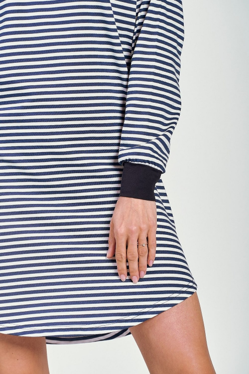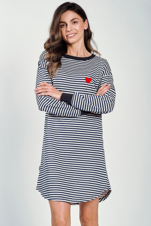 Koszula damska wysokiej jakości bawełna , długi rękaw , dekolt półokrągły  z przodu delikatny nadruk , długość przed kolana , dół lekko zaokrąglony. Skład: koszulka: 100% bawełna.