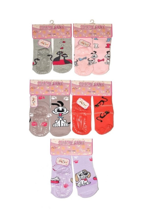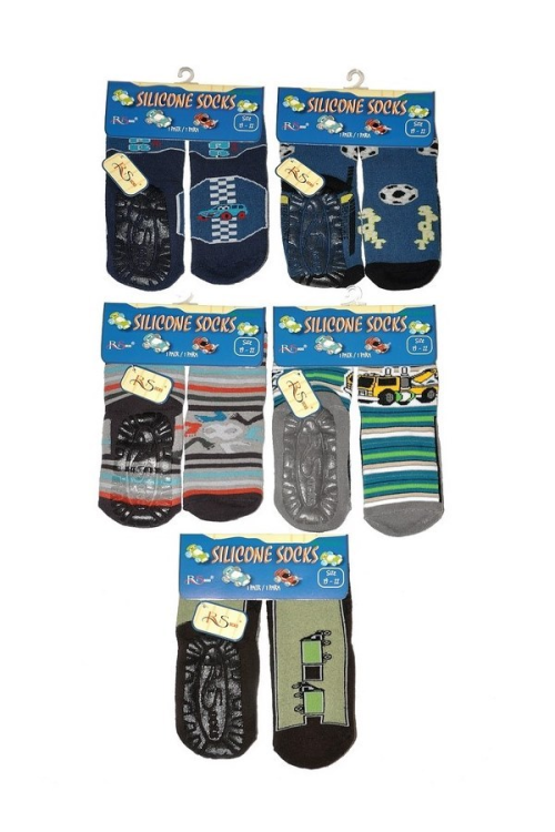 Bawełniane (75%) skarpety dziecięce z dodatkiem włókien elastycznych, z silikonową podeszwą. Bogate wzornictwo i kolorystyka.