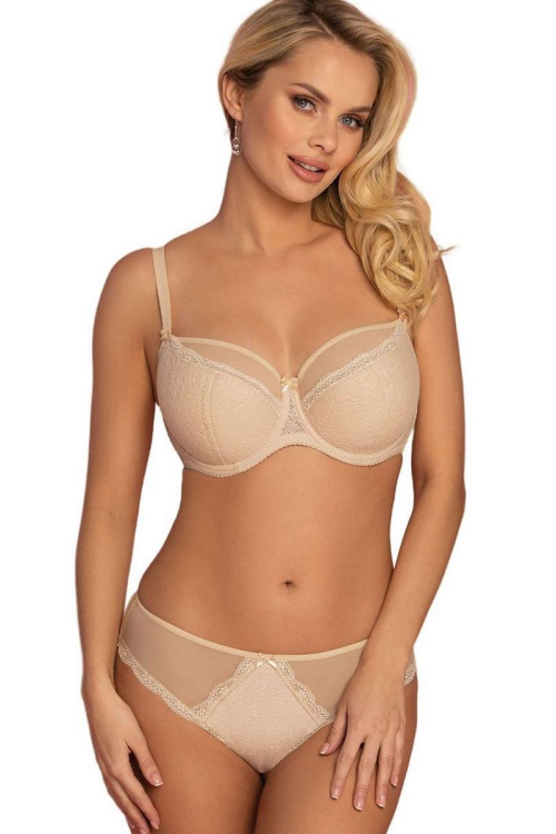 Klasyczne figi damskie wykonane z plenu, tiulu, koronki oraz mikrofbiry. Na środku drobna kokardka ,tył gładki uszyty z mikrofibry.