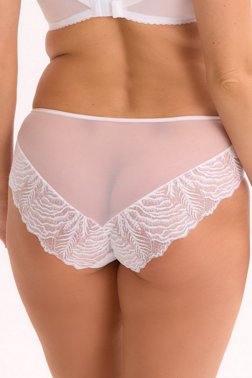 Figi pełne z koronką i tiulem. Skład: 75% poliamid, 15% elastan, 10% bawełna.