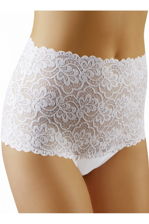 Wygodne i komfortowe figi damskie z wysokiej jakości bawełny i dodatku elastanu 6%. Górna linia z ażurowej koronki o kwiatowym motywie. Wysokie, zabudowane na biodrach.