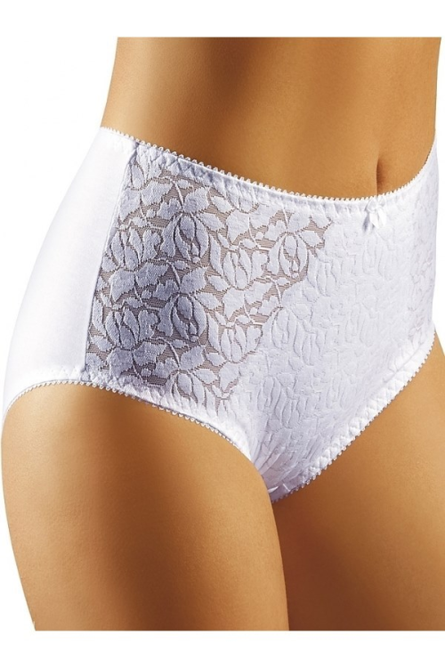 Wygodne i komfortowe figi damskie z miękkiej dzianiny bawełnianej 95%, z przodu koronka - od wewnętrznej strony podszyta opinającą tkaniną.