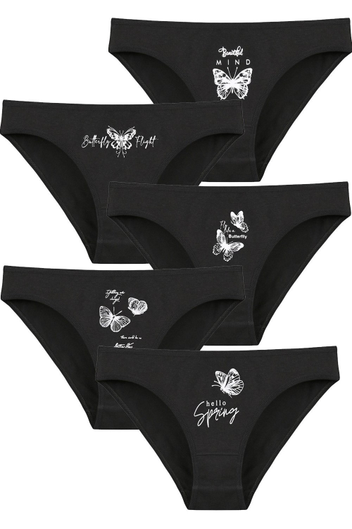 Bawełniane figi damskie. Pakowane po dwie sztuki w foliowy woreczek w różnych zestawach kolorystycznych. Skład: 95% bawełna, 5% elastan.
