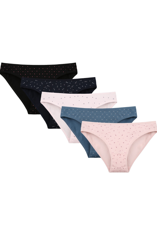 Figi damskie. Pakowane po dwie sztuki w foliowy woreczek. Skład: 95% bawełna, 5% elastan.