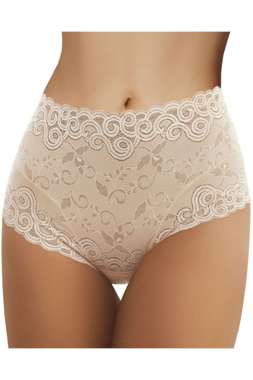 Figi damskie efektowna koronka wysoka linia talii, zabudowane biodra. Skład: 83% poliamid, 17% elastan.