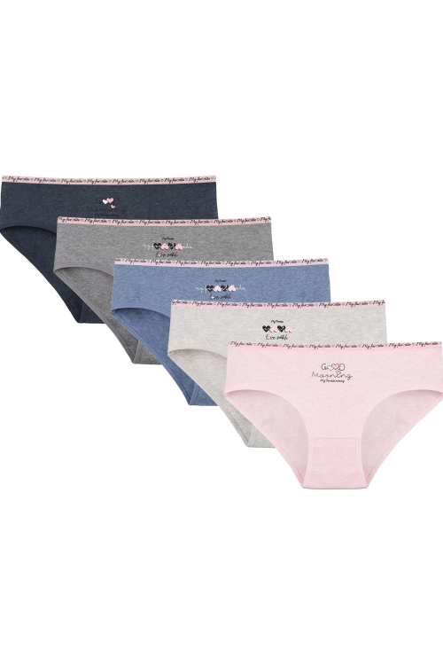 Figi damskie mix wzór. Pakowane po dwie sztuki w foliowy woreczek. Skład: 95% bawełna, 5% elastan.