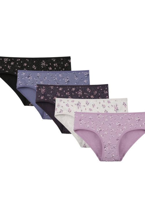 Figi damskie mix wzór. Pakowane po dwie sztuki w foliowy woreczek. Skład: 95% bawełna, 5% elastan.