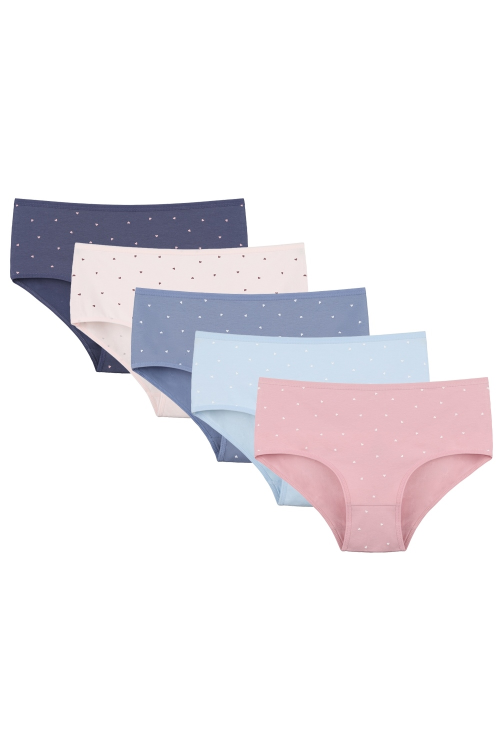 Bawełniane figi damskie z wysokim stanem. Pakowane po 2 szt. w foliowy woreczek mix wzór.