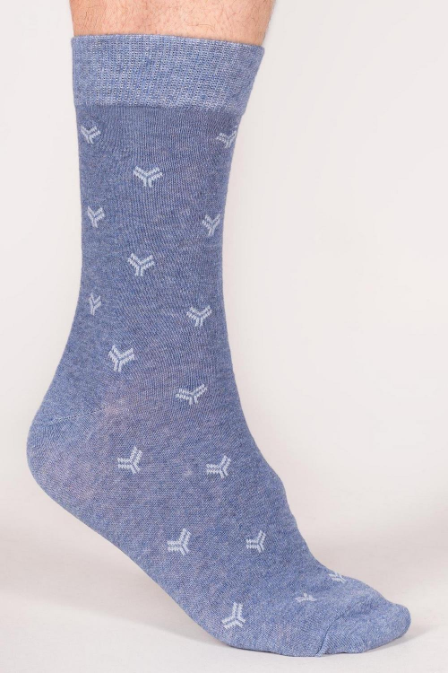 Bawełniane skarpety męskie ozdobione kolorowymi wzorami. Nieuciskający ściągacz.Skład: 80% bawełna, 15% poliamid, 5% elastan.
