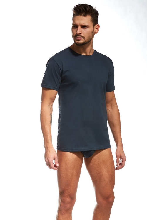 Komfortowa koszulka męska z krótkim, dopasowanym rękawem. Dekolt półokrągły z plisą. Wykonana z wysokiej jakości bawełny 100%. Rękaw zdobi metalowa blaszka z logo Cornette.