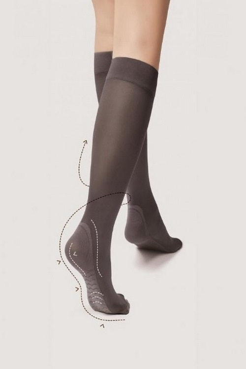 Podkolanówki z profilaktycznym efektem masażu stóp i z bezuciskowym ściągaczem. Dzięki zastosowaniu technologii Silver Fresh, skóra pozostaje sucha i świeża, a nieprzyjemny problem rozwoju bakterii i grzybów staje się przeszłością. Skład surowcowy: 80% Po